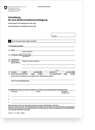 Die Mutter kann den Anspruch über ihren Arbeitgeber geltend machen oder, wenn sie selbstständig erwerbend, arbeitslos oder arbeitsunfähig ist, direkt an die Ausgleichskasse.