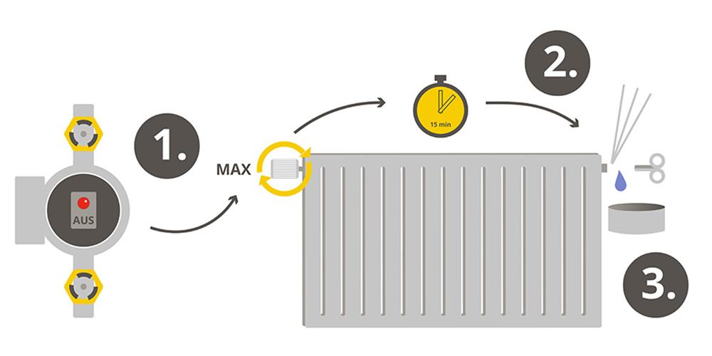 entlüftet die Heizkörper und